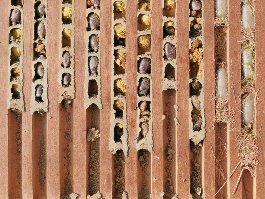 Mit naturbelassenen Gärten und eigenen Nistplätzen auf unserer Dachterrasse unterstützen wir aktiv Wildbienen wie die Rote und die Gehörnte Mauerbiene.